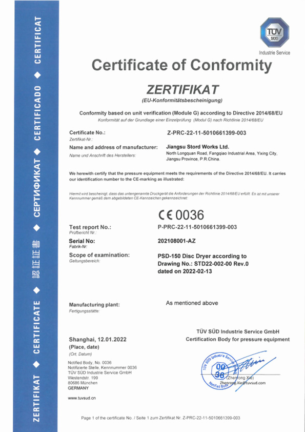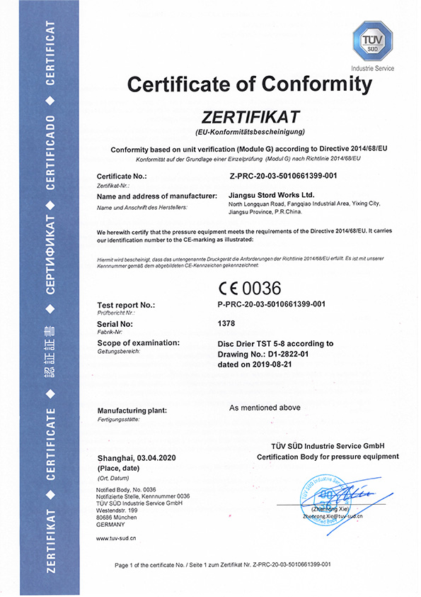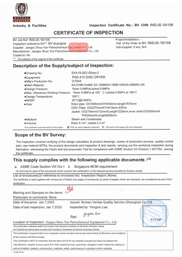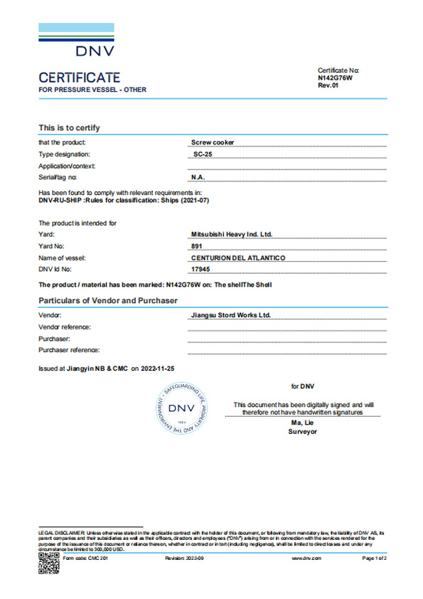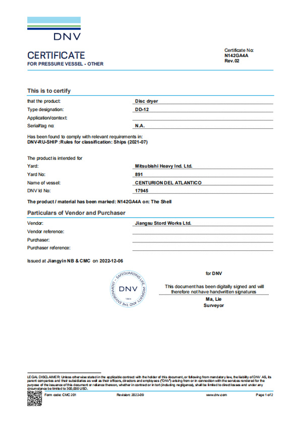 DD-12 圆盘干燥机 DNV 船级社认证证书