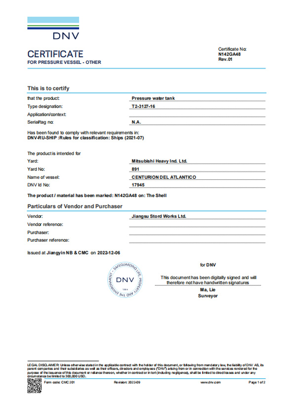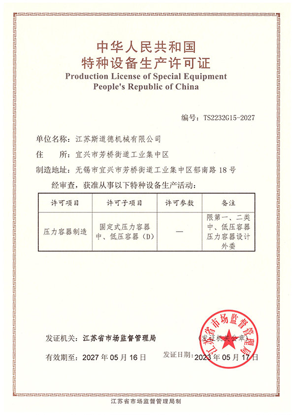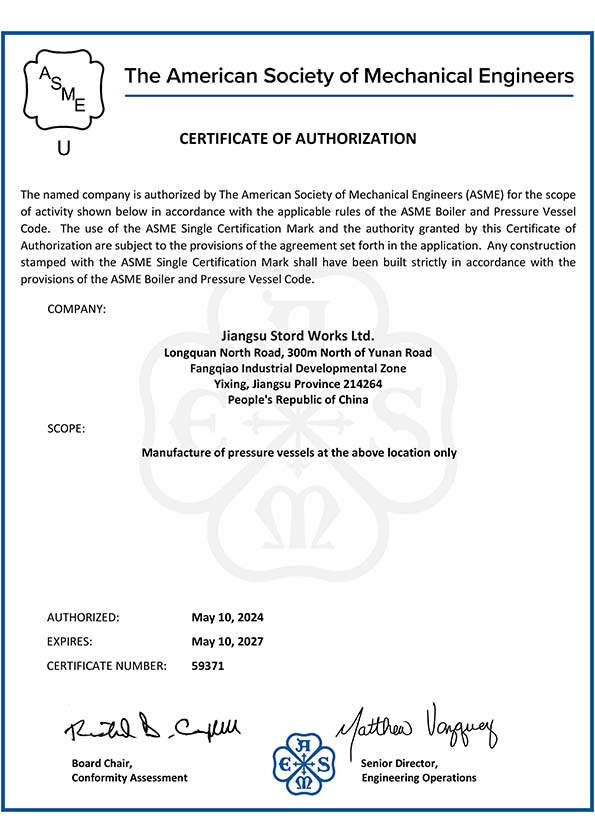 斯道德拥有国际各类压力容器认证和设备生产制造经验,如国标压力容器,美国ASME认证,挪威船级社DNV认证,欧盟PED认证,澳大利亚AS1210认证等。